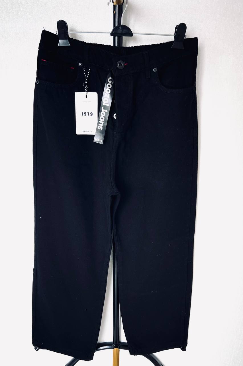 شلوار جین فول بگ پارچه جین با کیفیت و وزن بالا بغل بنددار رنگ مشکی زاپ دار زانفیکس شده۱٬۲۹۰٬۰۰۰ تومان