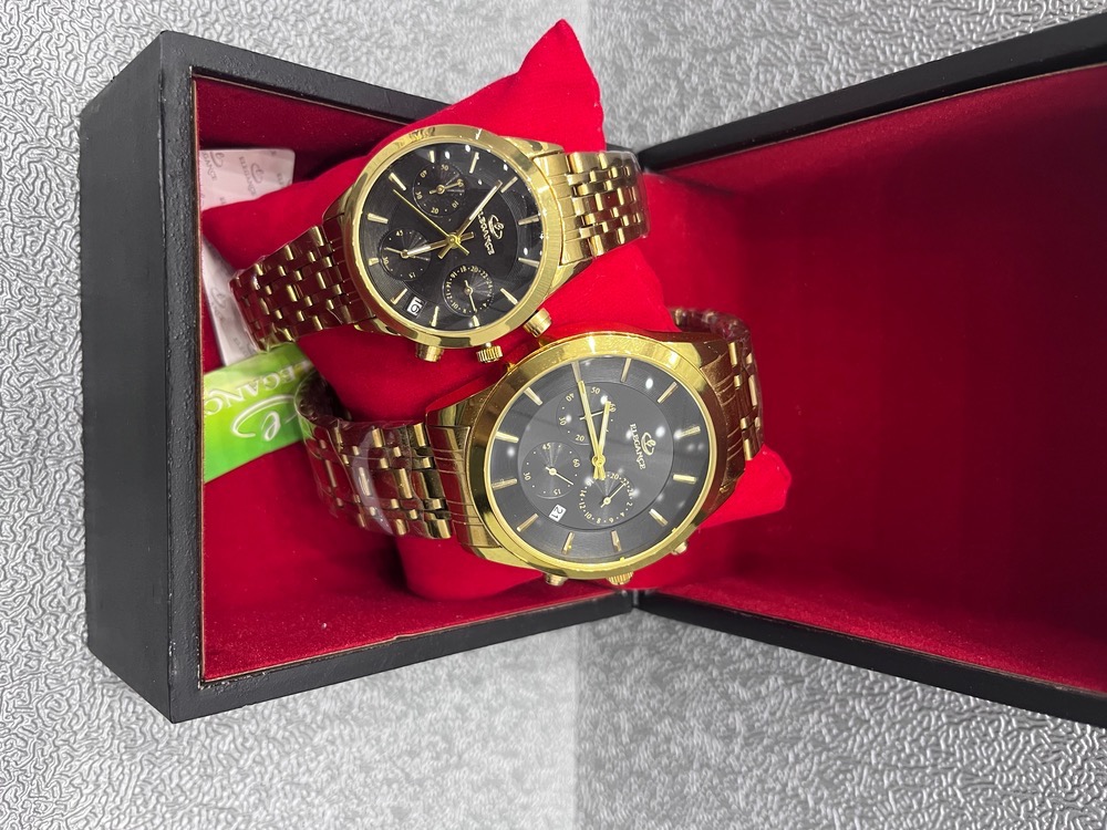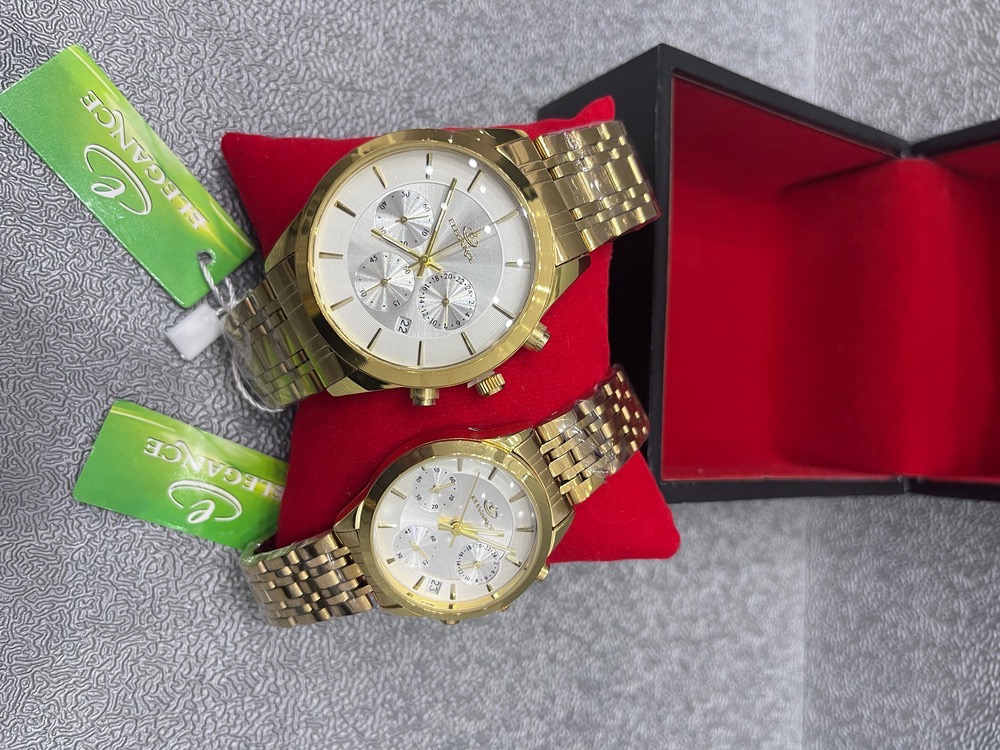 ساعت ست زنانه - مردانه الگانس (الگنگس-ELEGANCE) رنگ طلایی صفحه سفید و مشکی