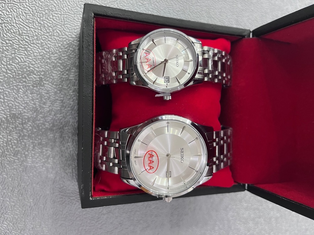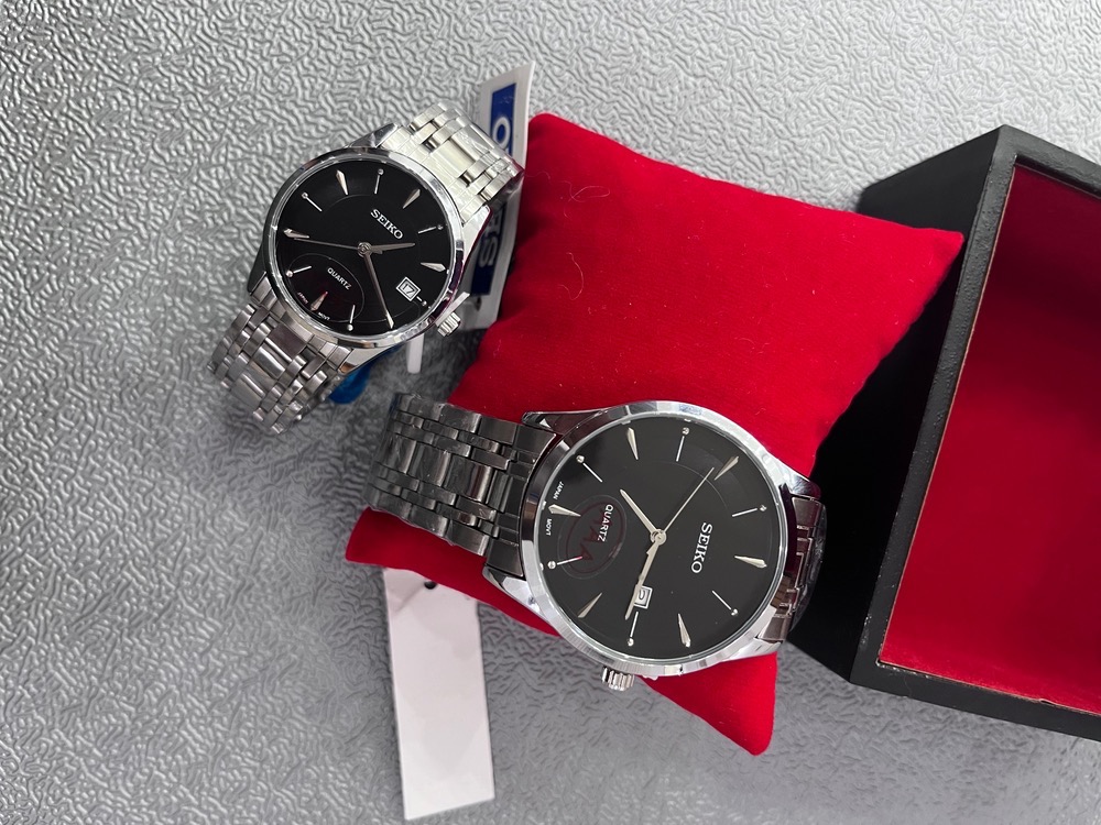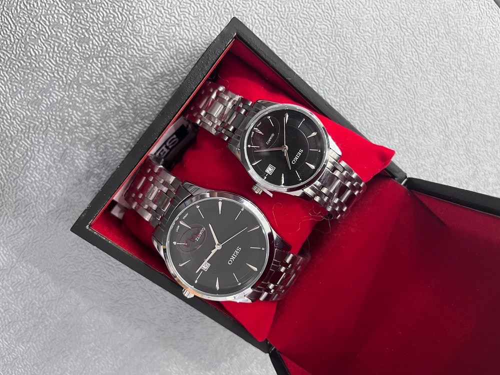 ساعت ست زنانه - مردانه سیکو (SEIKO) ضد آب جنس استیل رنگ ثابت صفحه سفید و مشکی