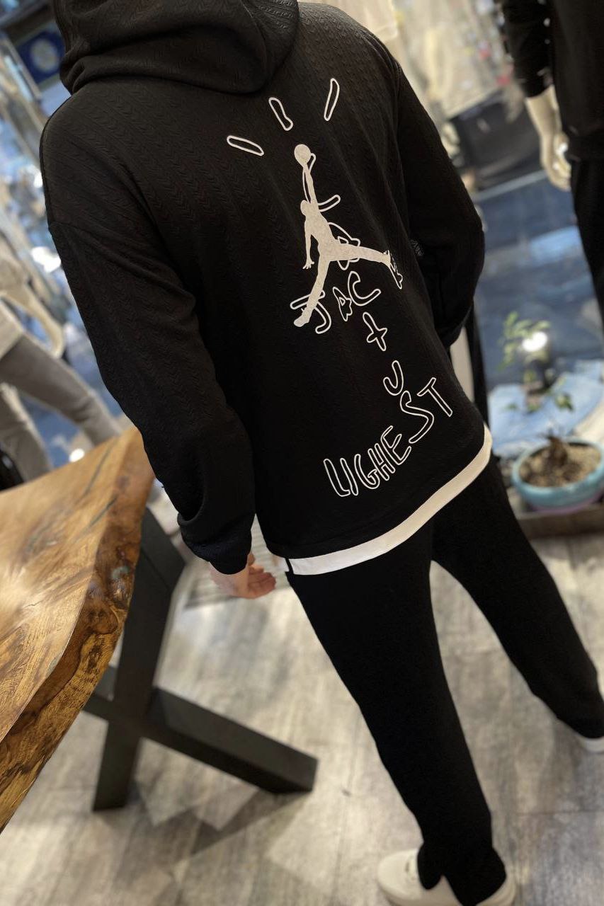ست هودی شلوار مراکشی (هودی کلاه دار پشت چاپ جردن) قواره نیم بگ و دمپا زیپ