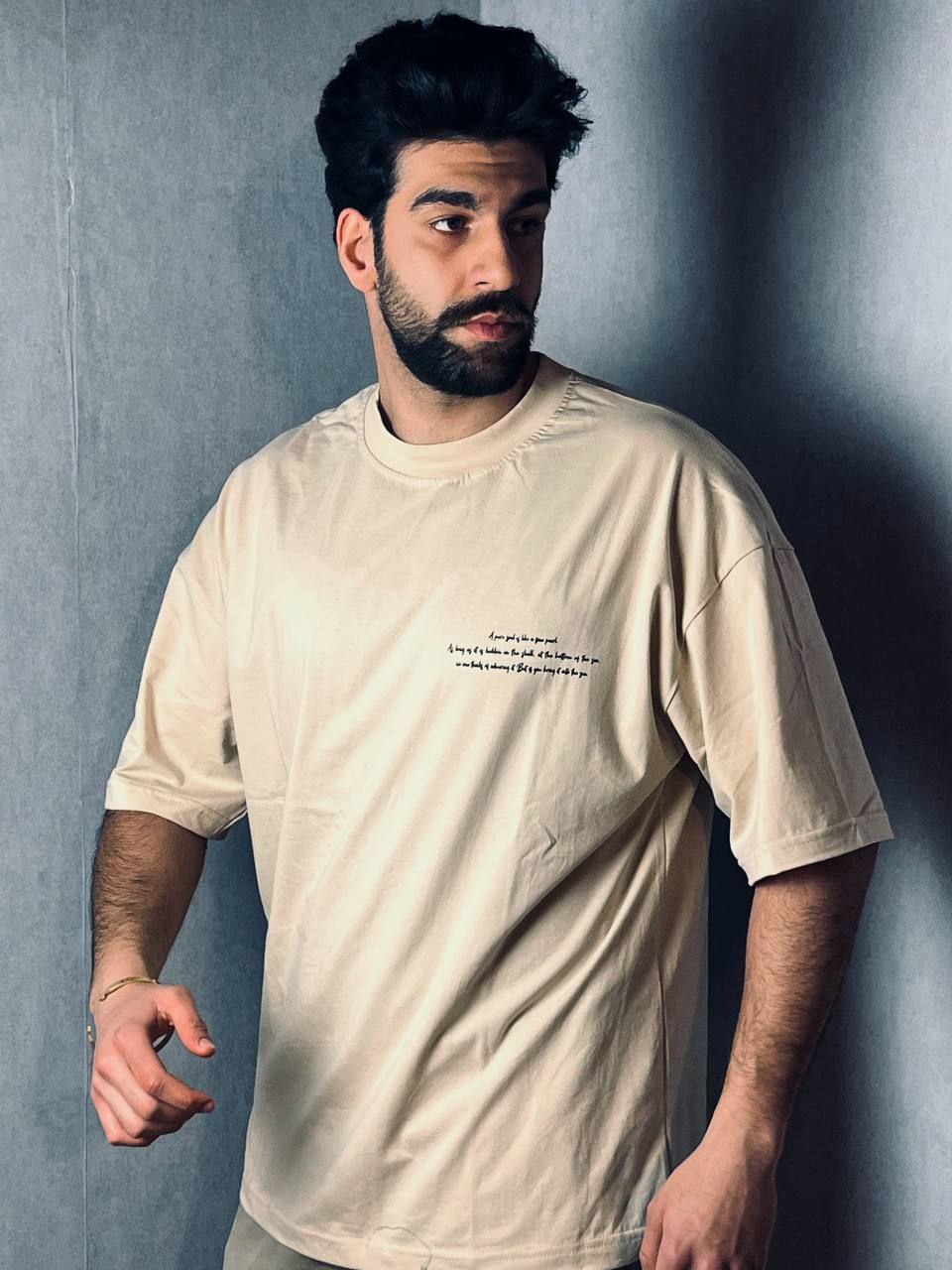 تیشرت لش پارچه پنبه قواره باکسی پشت چاپ