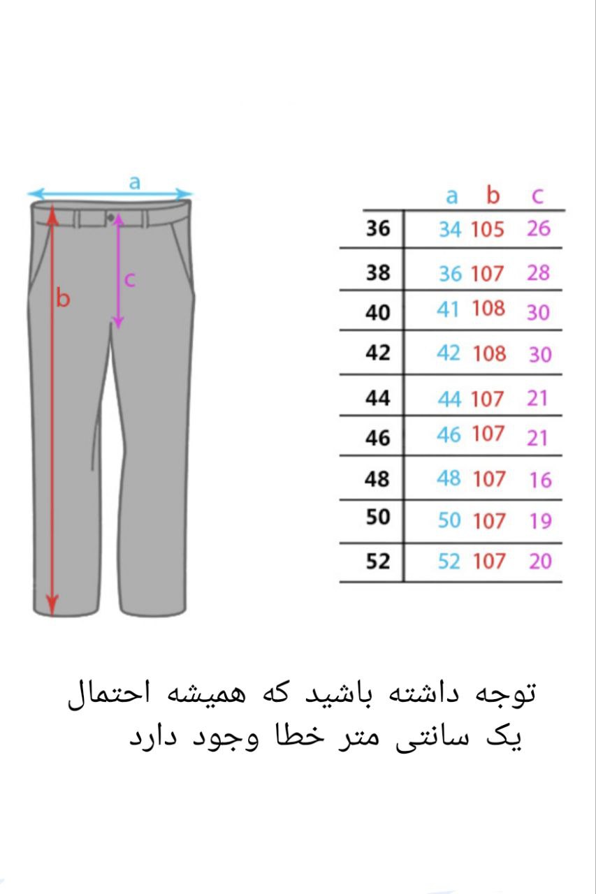برای انتخاب سایز مناسب اندازه ای که تو عکس آخر هست رو با یه شلوار خودتون مقاتیسه کنید